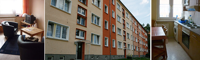- Gemeinschaftsraum, Küche und Bad zusammen mit jeweils einem/r MitbewohnerIn
